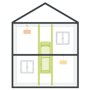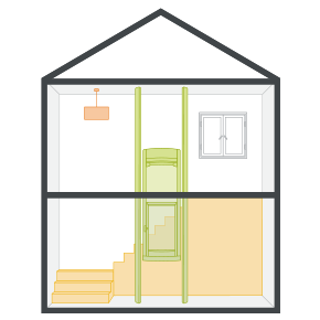 Ez a legnépszerűbb elhelyezés, amikor a lift a földszinti és az emeleti helyiségek között közlekedik.