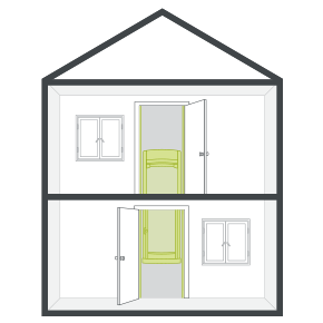 A Stiltz DUO beltéri lift központilag elhelyezett támaszai önhordó szerkezetet eredményeznek. Ez azt jelenti, hogy a felvonót rugalmasan elhelyezheti a házban, függetlenül a teherhordó falaktól, ablakoktól, fűtéstől és egyéb körülményektől.